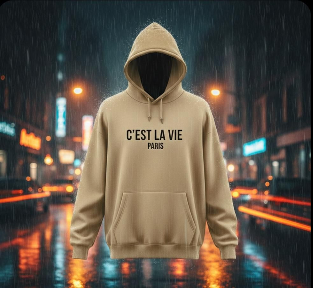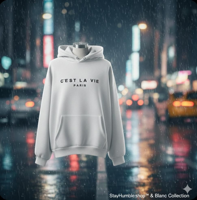 Velkommen til en ny definisjon av hverdagskomfort. Vår C’est La Vie Paris hettegenser er mer enn bare et plagg; det er en livsstil. Navnet betyr "slik er livet", og fanger den uanstrengte, franske elegansen som hyller de små øyeblikkene i hverdagen. Denne hoodien er håndplukket til vårt sortiment for deg som ønsker en moderne og avslappet stil uten at det krever for mye innsats.